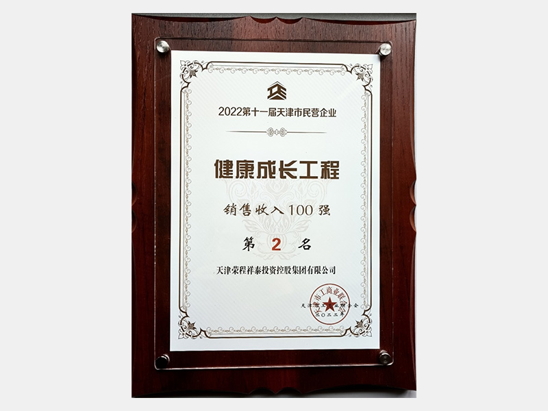 2022第十一屆天津市民營(yíng)企業(yè)健康成長(zhǎng)工程銷售收入100強(qiáng)第2名