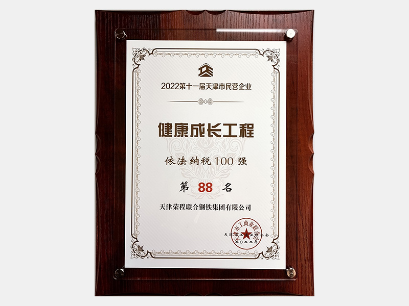 2022第十一屆天津市民營企業(yè)健康成長工程依法納稅100強第88名