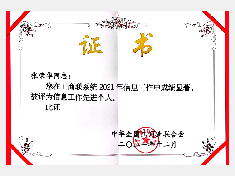 您在工商聯(lián)系統(tǒng)2021年信息工作中成績顯著,被評為信息工作先進個人。