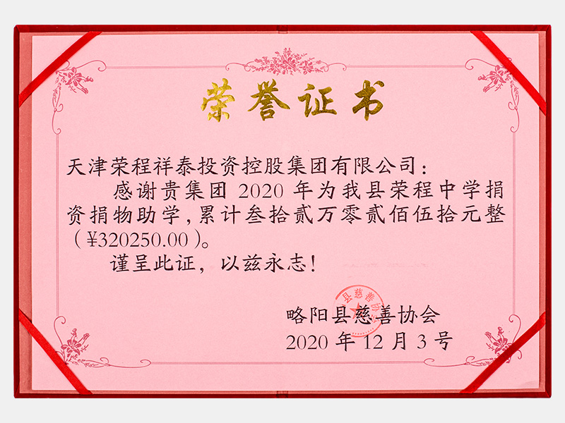 2020年為我縣榮程中學(xué)捐資捐物助學(xué)累計叁拾貳萬零貳佰伍拾元整(320250元)