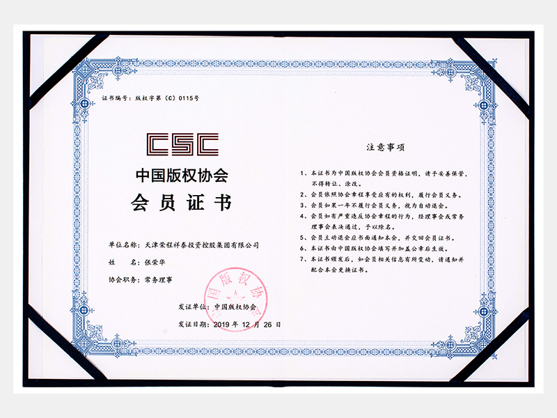 中國(guó)版權(quán)協(xié)會(huì)會(huì)員證書(shū)
