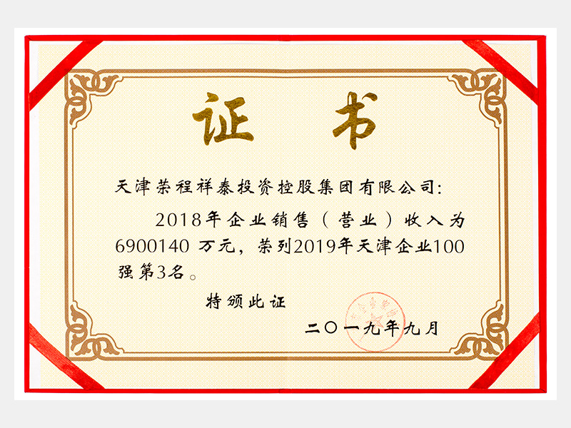 2018年企業(yè)銷售(營(yíng)業(yè))收入為6900140萬(wàn)元,榮列2019年天津企業(yè)100強(qiáng)第3名。