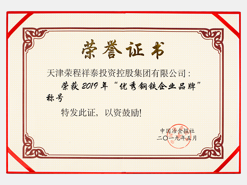 榮獲2019年“優(yōu)秀鋼鐵企業(yè)品牌”稱號