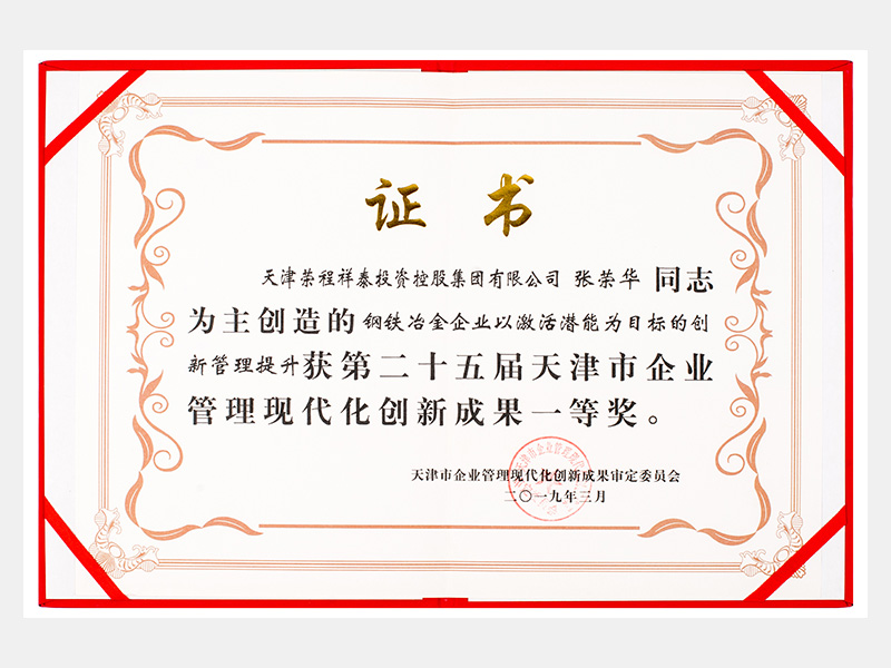 張榮華同志參與創(chuàng)造的鋼鐵冶金企業(yè)以激活潛能為目標(biāo)的創(chuàng)新管理提升獲第二十五屆天津市企業(yè)管理現(xiàn)代化創(chuàng)新成果一等獎(jiǎng)。