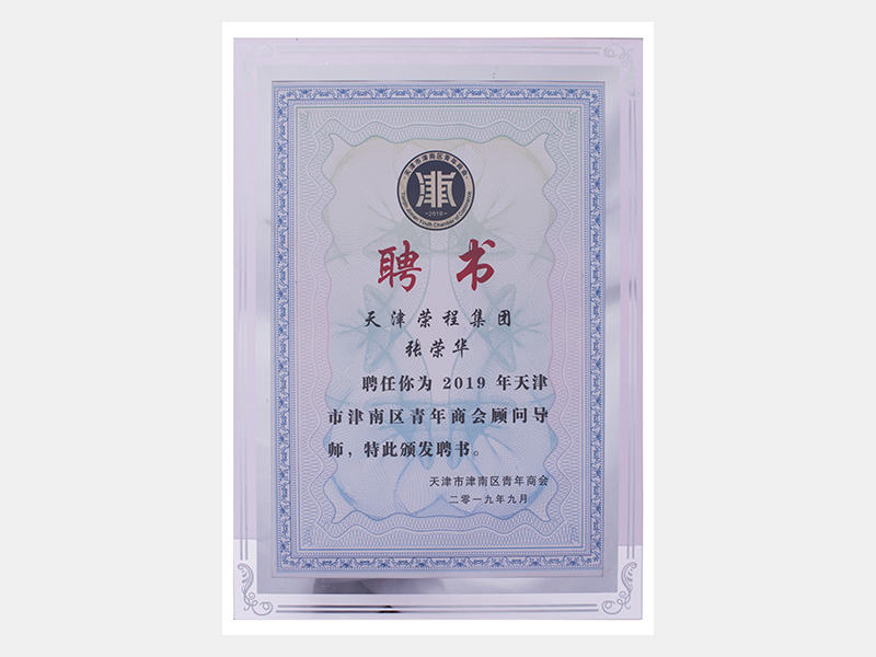 天津榮程集團(tuán)張榮華聘為2019年天津市津南區(qū)青年商會顧問導(dǎo)師(聘書)
