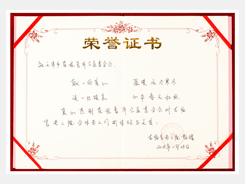 “購滯銷蔬菜捐贈養(yǎng)老院福利院活動”龍福宮老人院榮譽證書(慈善)